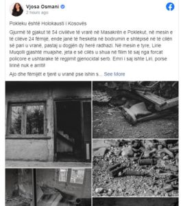 E ne nuk do të ndalojmë kurdo dhe kudo ta themi dhe ta mbrojmë të vërtetën për këto masakra, ka thënë Osmani në postimin e saj në Facebook.