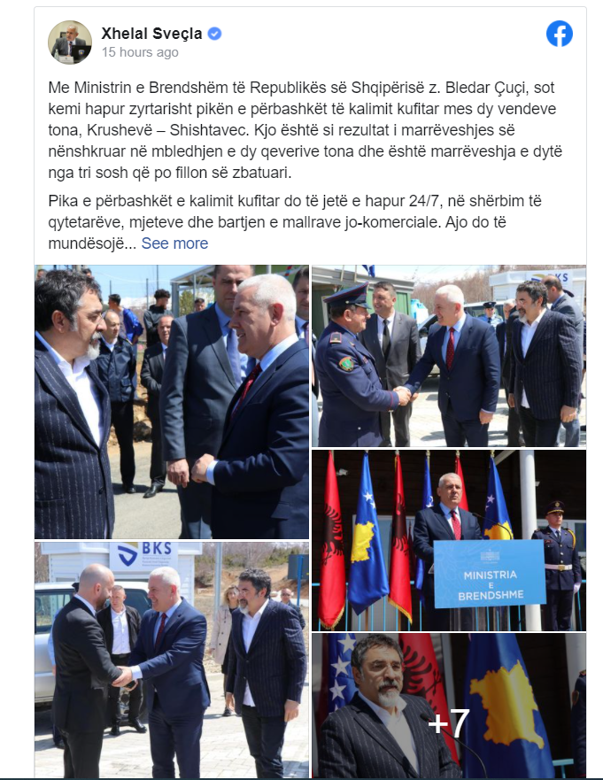 Ministri i Brendshëm i Kosovës, Xhelal Sveçla bashkë me ministrin e Brendshëm të Shqipërisë Bledar Çuçi, kanë hapur zyrtarisht pikën e përbashkët të kalimit kufitar mes dy vendeve Krushevë – Shishtavec. Kjo është si rezultat i marrëveshjes së nënshkruar në mbledhjen e dy qeverive dhe është marrëveshja e dytë nga tri sosh që po fillon së zbatuari.