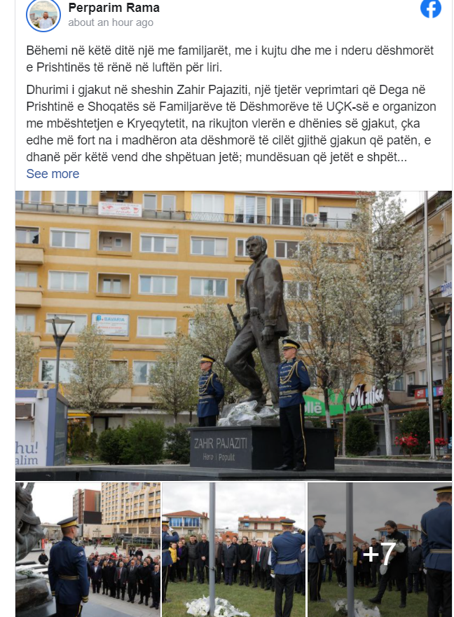 Bëhemi në këtë ditë një me familjarët, me i kujtu dhe me i nderu dëshmorët e Prishtinës të rënë në luftën për liri.