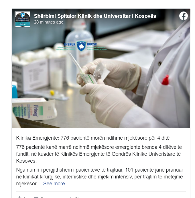 Në kuadër të Klinikës Emergjente të Qendrës Klinike Univeristare të Kosovës, 776 pacientë kanë marrë ndihmë mjekësore emergjente brenda 4 ditëve të fundit.