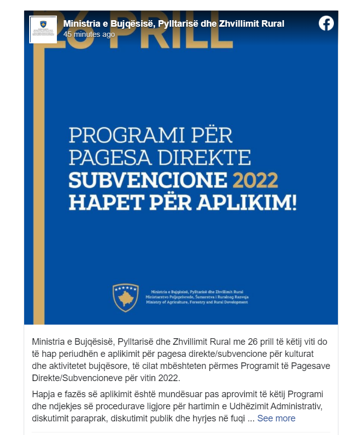 Duke ftuar fermerët që të aplikojnë për mbështetje në kuadër të këtij Programi, ministri i Bujqësisë, Pylltarisë dhe Zhvillimit Rural, Faton Peci ka theksuar se në kuadër të këtij Programi kanë adresuar rritje substanciale të mbështetjes financiare për fermerë me vlerë prej rreth 50 milionë euro.