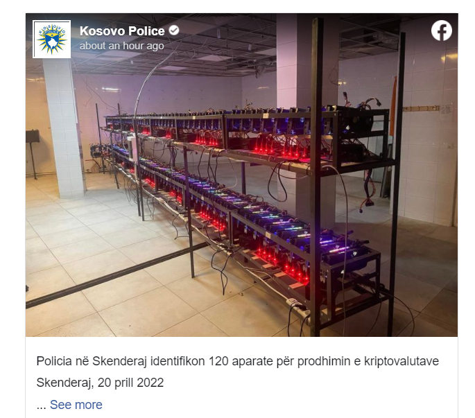 Si rezultat i hetimeve është arritur të lokalizohet dhe identifikohet lokacioni, me ç’rast bastisja është realizuar në hapësirat e një objekti në rrugën ’28 Nëntori’ në Skenderaj. Gjatë bastisjes janë gjetur 120 aparate të lidhura me pajisje elektrike dhe internet që dyshohen se përdoreshin për prodhimin e kriptovalutave.