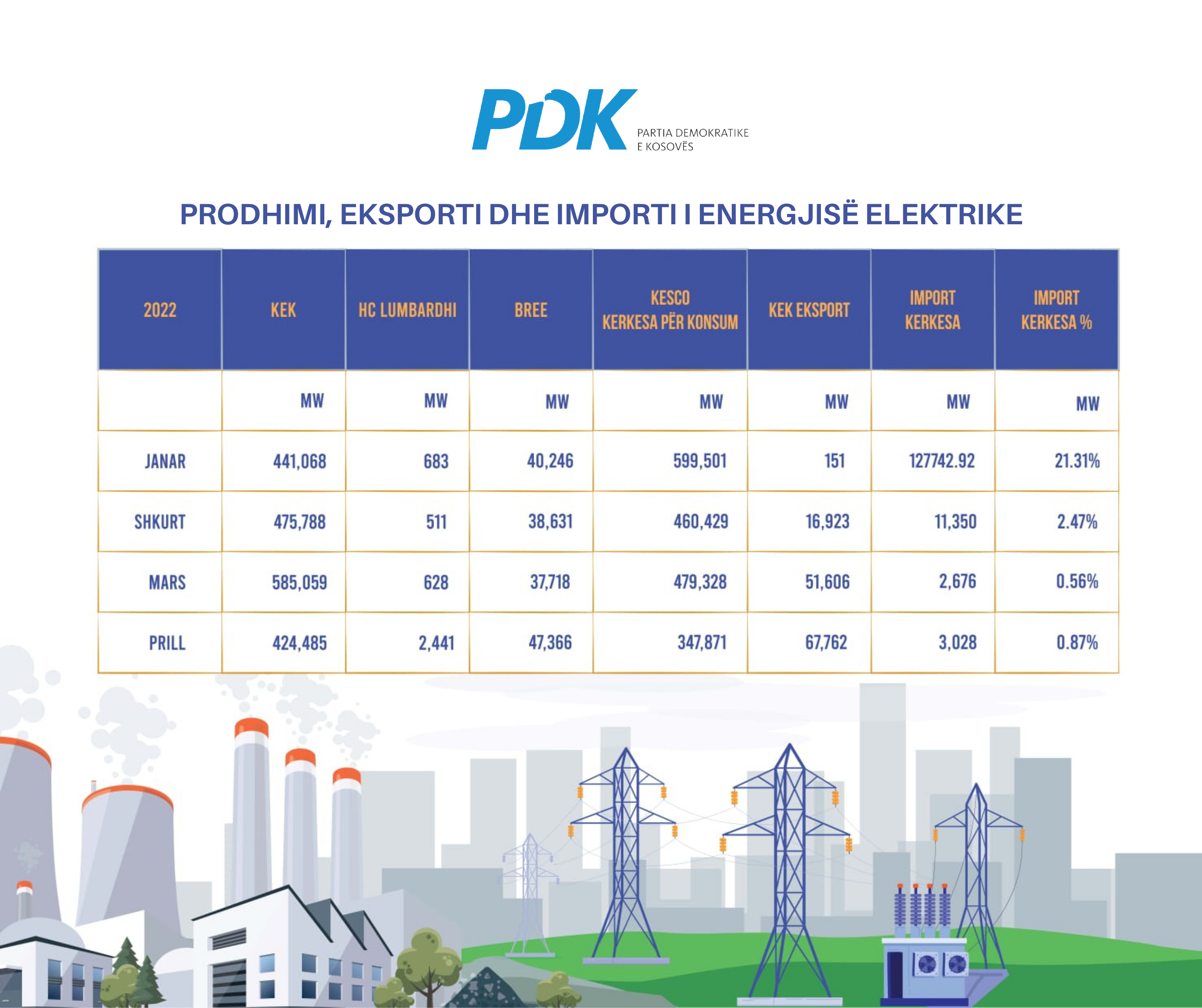 Ai tha se nga këto të dhëna zyrtare shihet se prodhimi i energjisë elektrike në Kosovë e ka mbuluar kërkesën për konsum në muajt shkurt, mars dhe prill.