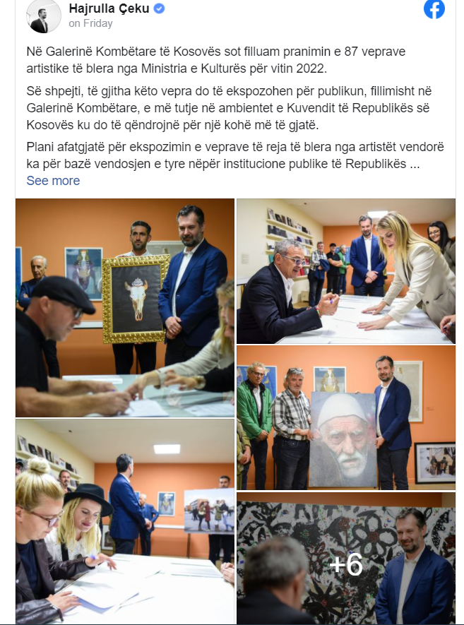 Vitin e ardhshëm, përveç blerjes me thirrje publike, do të fillojë edhe blerja direkte e veprave të artit, thuhet në postimin në Facebbok të MKRS-së.