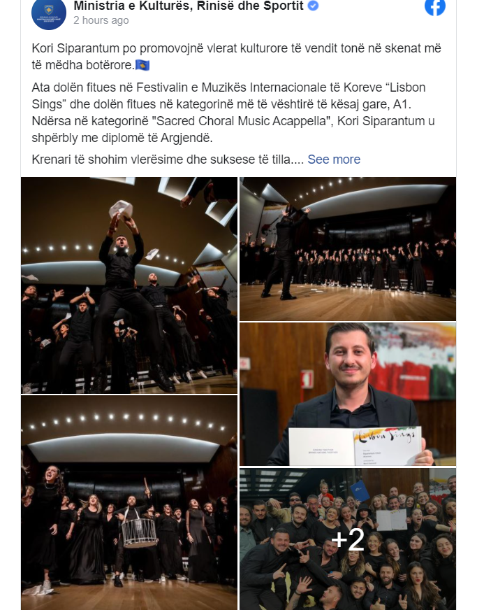 Ministria e Kulturës bën të ditur se Kori Siparantum po promovon vlerat kulturore të vendit tonë në skenat më të mëdha botërore.