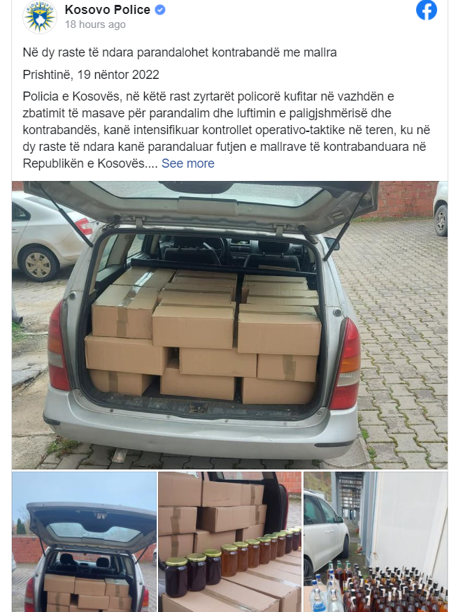 Pas kryerjes së procedurave fillestare, rasti është proceduar nga Dogana e Kosovës. Policia e Kosovës në bashkëpunim me Doganën e Kosovës do të vazhdojnë bashkëpunimin dhe koordinimin në luftimin dhe parandalimin e kontrabandës së mallrave, thuhet në postimin në Facebook të PK-së.