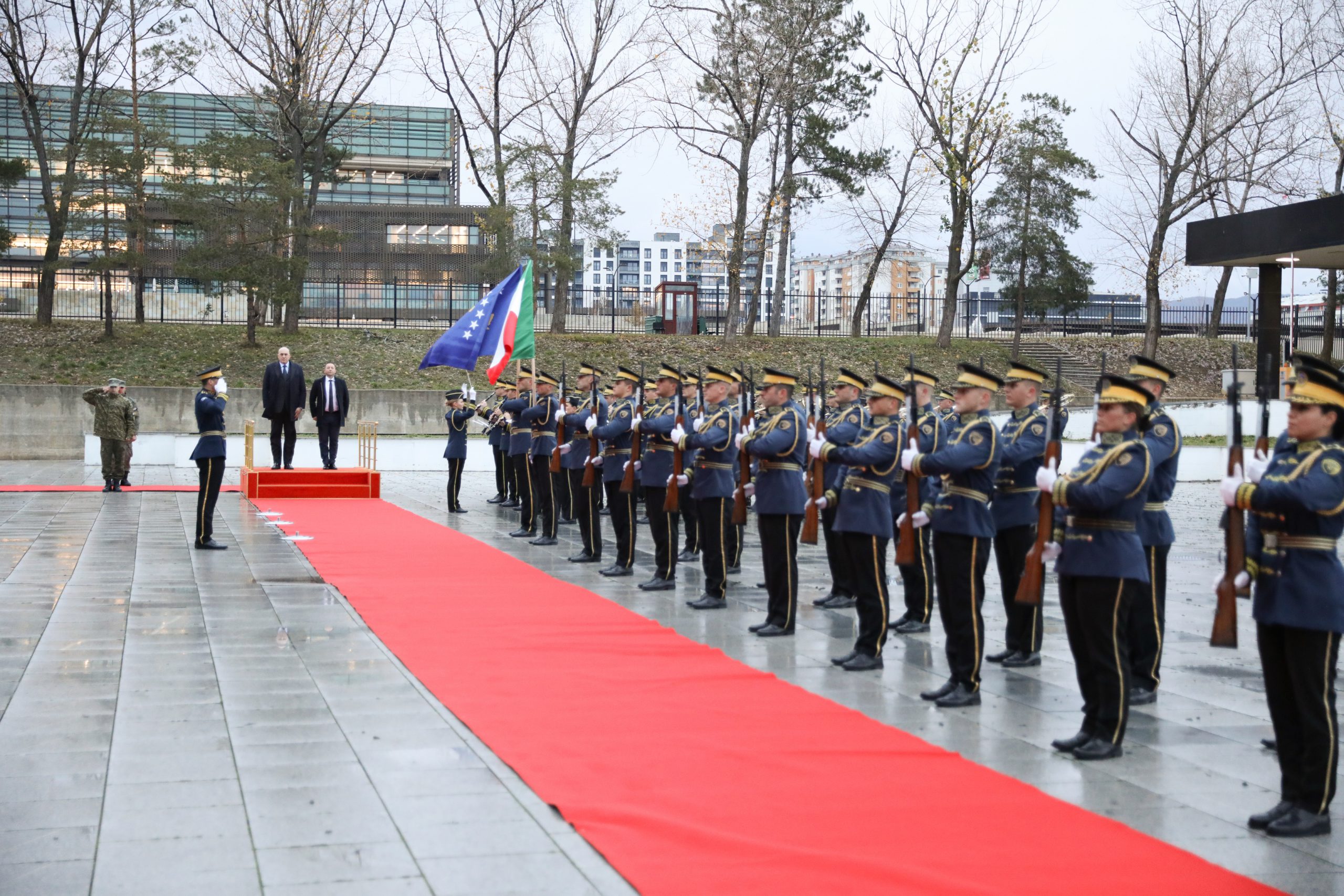 Në kuadër të takimeve me homologët e vendeve partnere, ministri i Mbrojtjes, Armend Mehaj, me nderime të larta ushtarake, priti në vizitë zyrtare ministrin e Mbrojtjes së Italisë, Guido Crosetto, me delegacionin e tij. Fillimisht, të dy ministrat mbajtën takime tête-à-tête, për të vazhduar në nivel të dy delegacioneve.