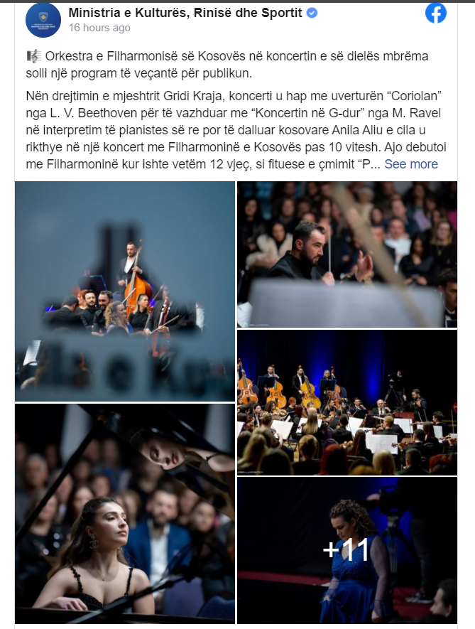 Ministria e Kulturës ka njoftuar se Orkestra e Filharmonisë së Kosovës në koncertin e mbajtur solli një program të veçantë për publikun.