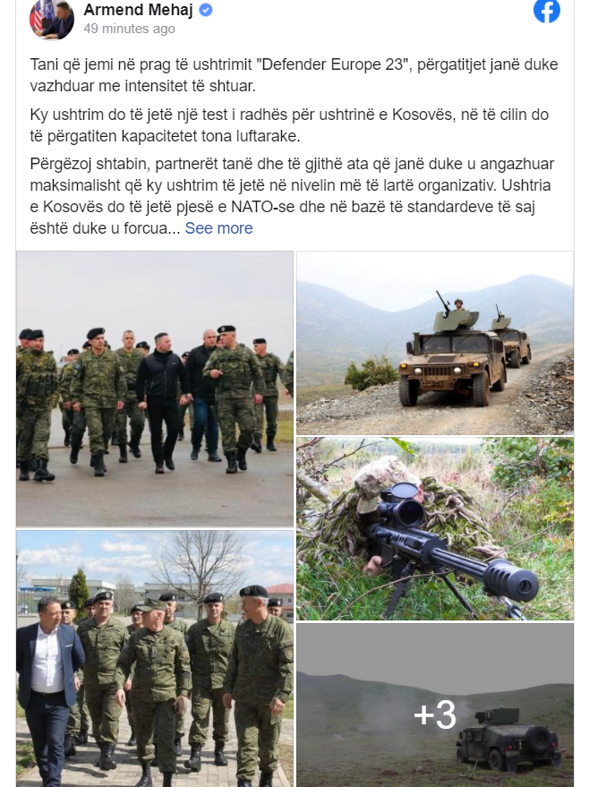 Mehaj në postimin e tij në Facebook ka përgëzuar shtabin, partnerët tanë dhe të gjithë ata që janë duke u angazhuar maksimalisht që ky ushtrim të jetë në nivelin më të lartë organizativ.