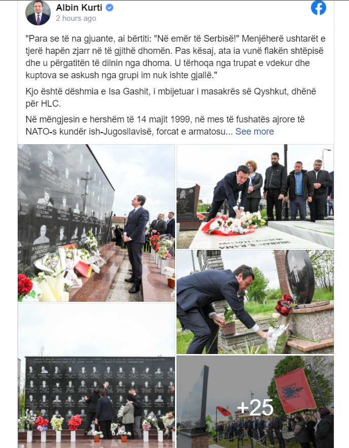 Kryeministri Kurti ka në postimin e tij në Facebook ka thënë se sistemi ynë i drejtësisë duhet të angazhohet për drejtësi për viktimat dhe gjykim e dënim të kriminelëve të luftës dhe urdhërdhënësve të tyre, krimet e Serbisë të kryera gjatë luftës në Kosovë nuk mund të falen e as harrohen, proceset e rralla e të pakta gjyqësore në Serbi ishin tallje me viktimat dhe shpërlarje kriminelësh.