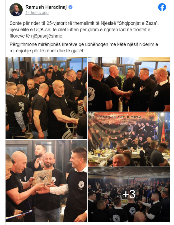 Haradinaj në postimin e tij në Facebook ka thënë se jemi përgjithmonë mirënjohës krerëve që udhëhoqën me këtë njësi!