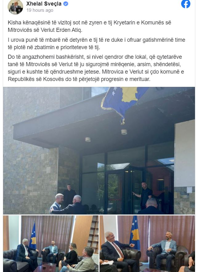 Ministri i Punëve të Brendshme, Xhelal Sveçla ka vizituar kryetarin e Komunës së Mitrovicës së Veriut, Erden Atić.