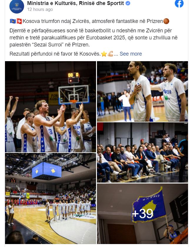 Ministria e Kulturës, Rinisë dhe Sportit ka bërë të ditur se djemtë e përfaqësueses Kosova të basketbollit u ndeshën me Zvicrën për rrethin e tretë parakualifikues për Eurobasket 2025, që u zhvillua në palestrën “Sezai Surroi” në Prizren. Rezultati përfundoi në favor të Kosovës.