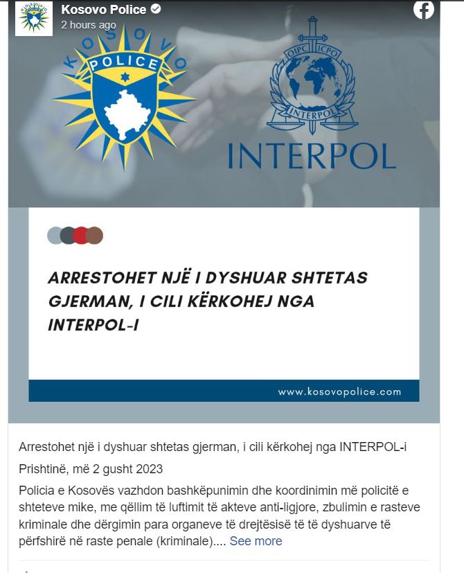 I dyshuari është lokalizuar dhe më pas arrestuar në Lipjan. Ai dyshohet për përfshirje në veprimtari penale, konkretisht për ‘keqpërdorim të fëmijëve në pornografi’.