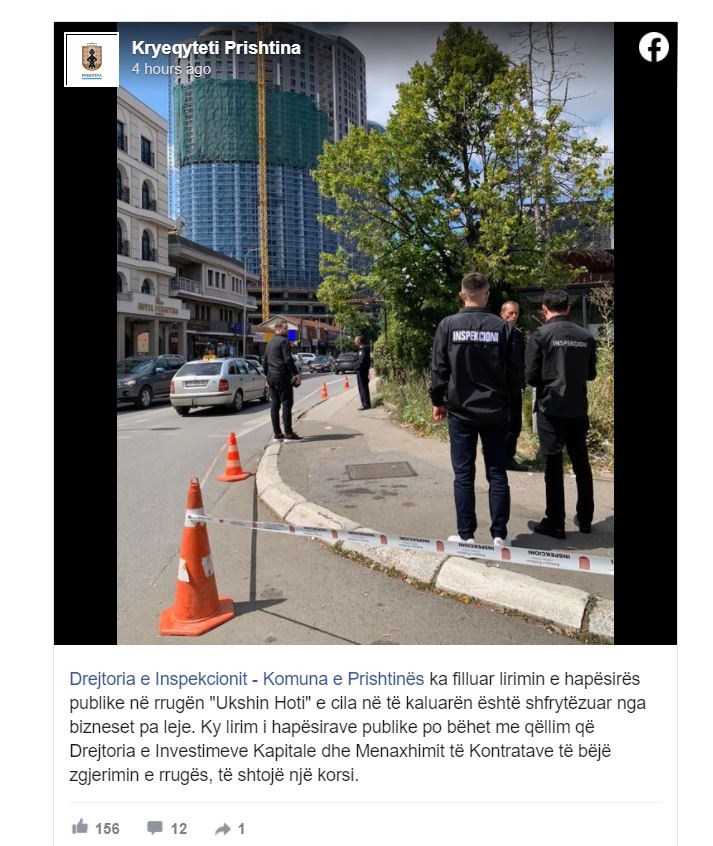 Drejtoria e Inspekcionit – Komuna e Prishtinës ka filluar lirimin e hapësirës publike në rrugën “Ukshin Hoti” e cila në të kaluarën është shfrytëzuar nga bizneset pa leje.