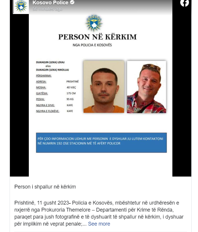 Ne vlerësojmë lartë bashkëpunimin me komunitetin për një shoqëri pa krim, andaj presim që informacionet tuaja t’i kontribuojnë arrestimit sa më të shpejtë të tyre, thuhet në postimin në Facebook të PK-së.