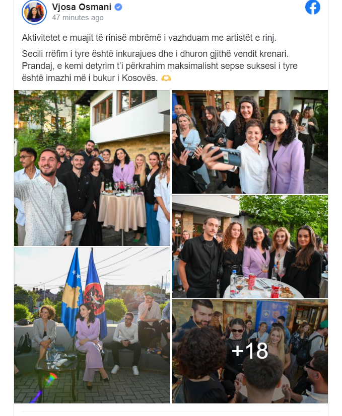 “E kemi detyrim t’i përkrahim artistët e rinjë maksimalisht sepse suksesi i tyre është imazhi më i bukur i Kosovës”, ka thënë presidentja Osmani.