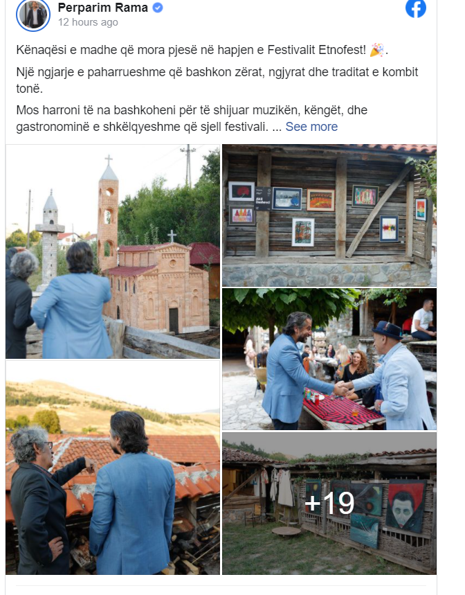 Rama në postimin e tij në Facebook ka thënë se Festivali Etnofest është një ngjarje e paharrueshme që bashkon zërat, ngjyrat dhe traditat e kombit tonë.