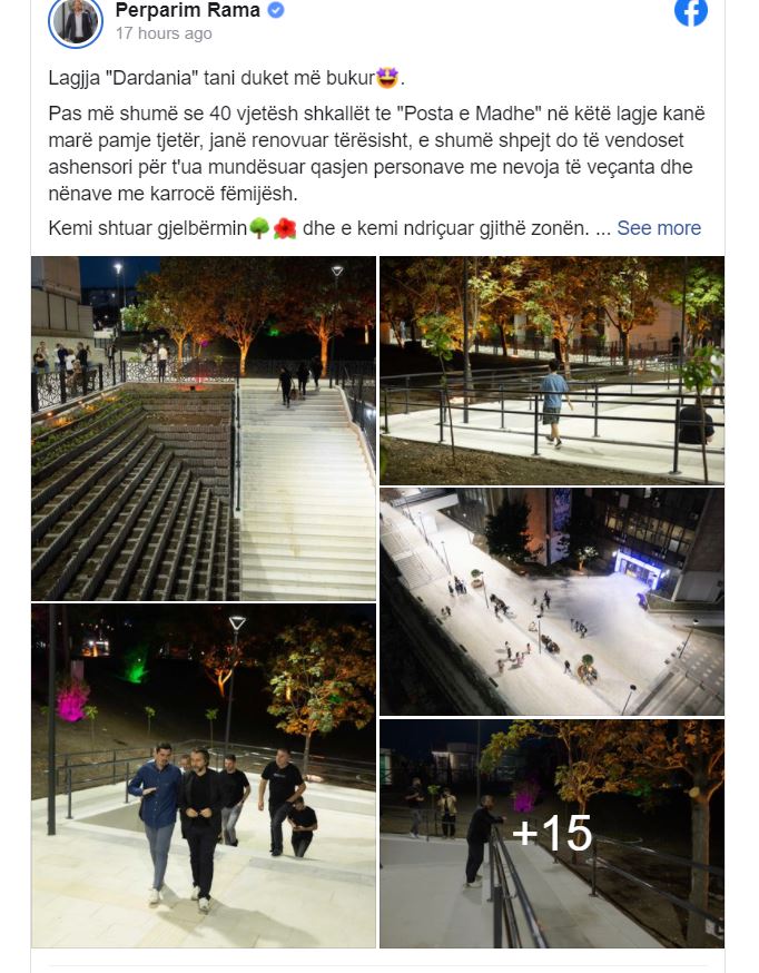 Rama në postimin e tij në Facebook ka thënë se shkallët te “Posta e Madhe” janë renovuar tërësisht, e shumë shpejt do të vendoset ashensori për t’ua mundësuar qasjen personave me nevoja të veçanta dhe nënave me karrocë fëmijësh.