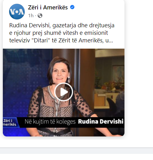 Zëri i Amerikës njofton se ka vdekur Rudina Dervishi, gazetarja dhe drejtuesja e njohur prej shumë vitesh e emisionit televiziv “Ditari” të Zërit të Amerikës,