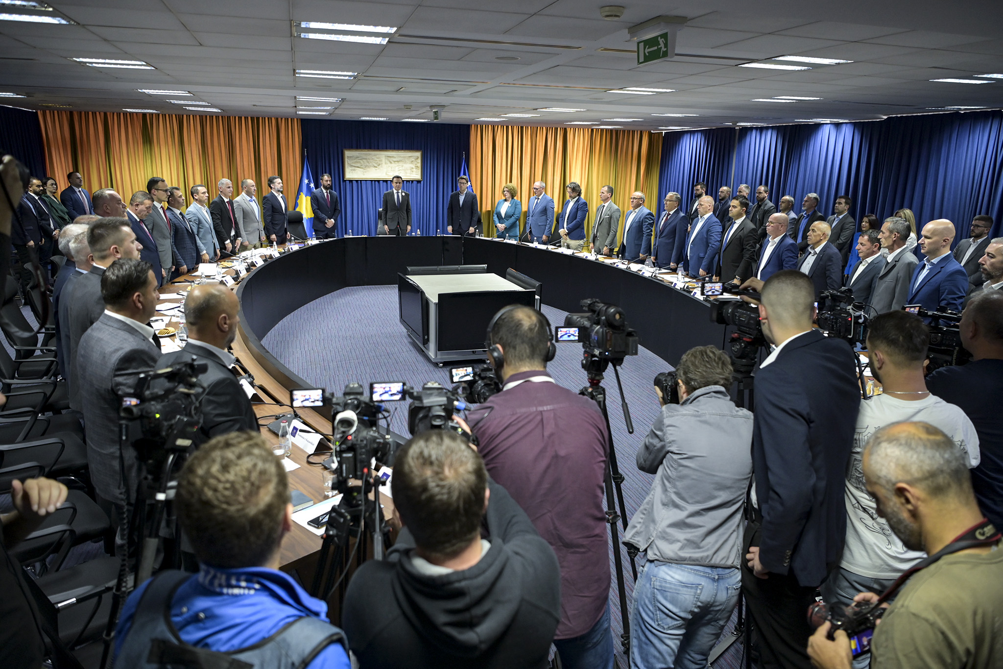 Mirë së vini në kryeministri. Një mirëseardhje e veçantë për Kryetarët e Komunave anëtare të reja të Asociacionit të Komunave të Kosovës; Ilir Peci, Kryetar i Komunës së Zveçanit; Izmir Zeqiri, Kryetari i Komunës së Zubin Potokut dhe Erden Atiq, Kryetar i Komunës Veriore të Mitrovicës.