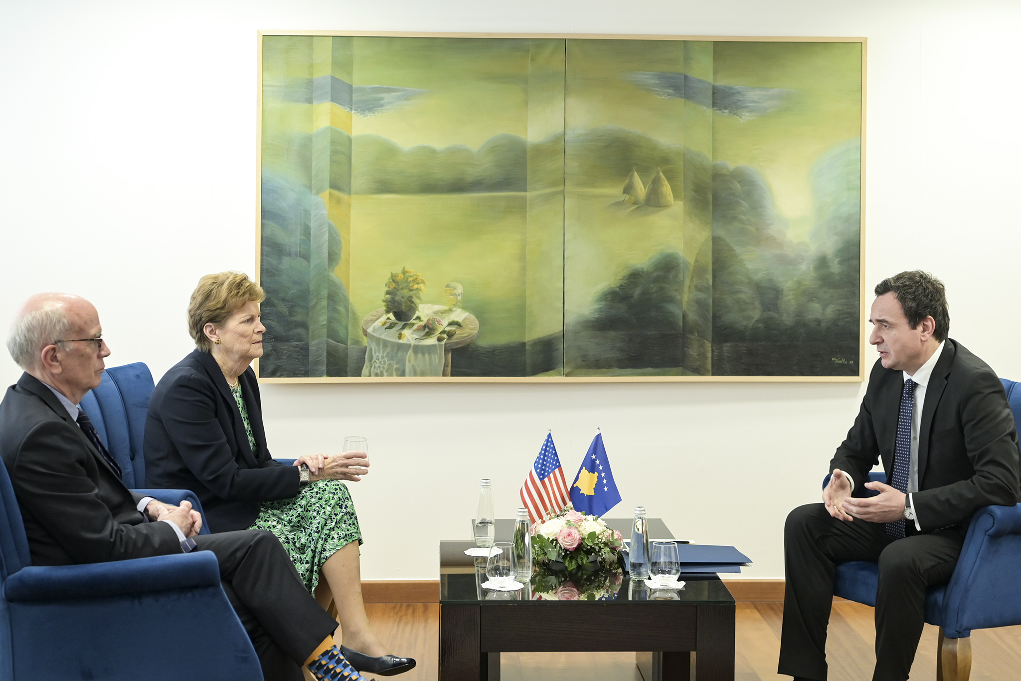 Kryeministri i Republikës së Kosovës, Albin Kurti mirëpriti në zyrën e tij, dy senatorët amerikanë, Jeanne Shaheen nga New Hampshire dhe Peter Welch nga Vermont.