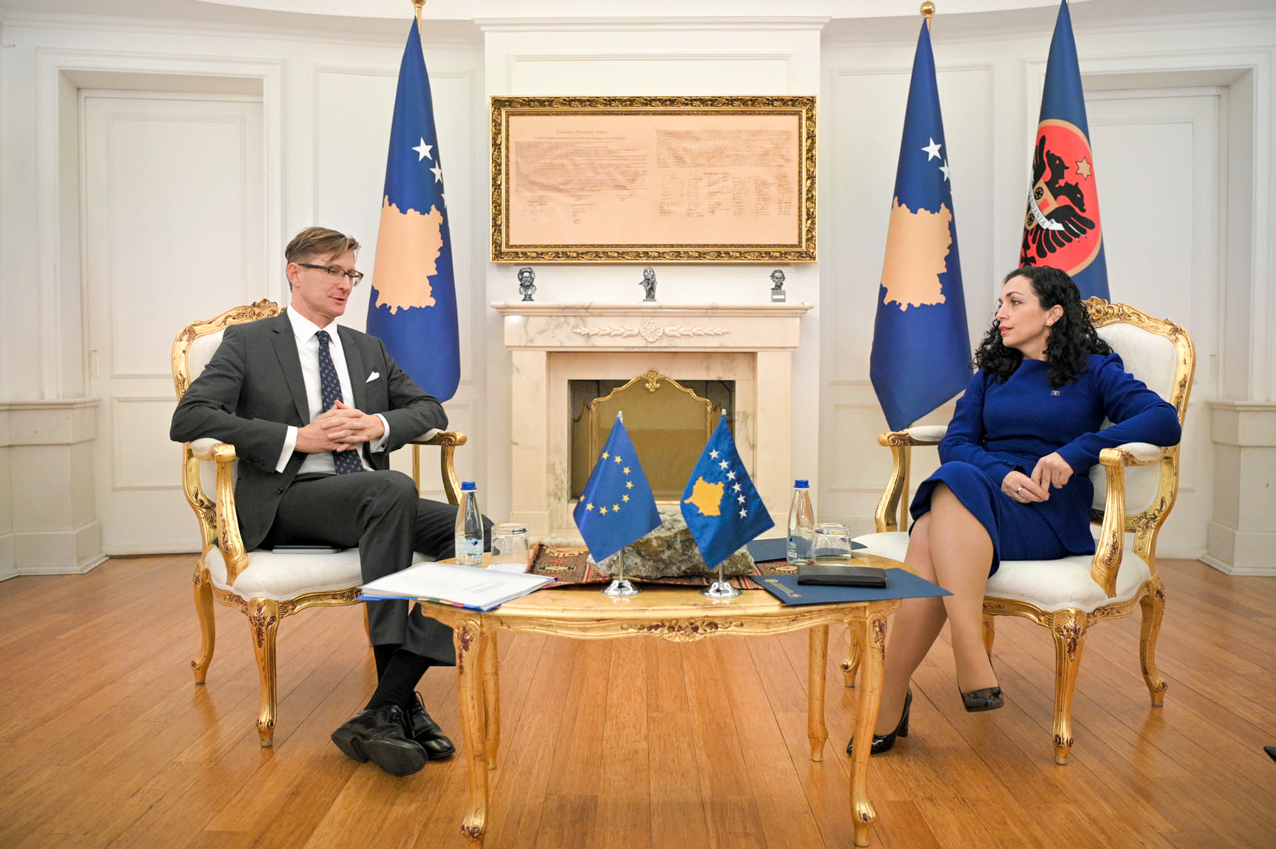 Presidentja e Republikës së Kosovës, Vjosa Osmani, ka pritur sot në takim zëvendësdrejtorin menaxhues për Evropë në Shërbimin Evropian të Veprimit të Jashtëm të BE-së (EEAS), Marko Makovec.