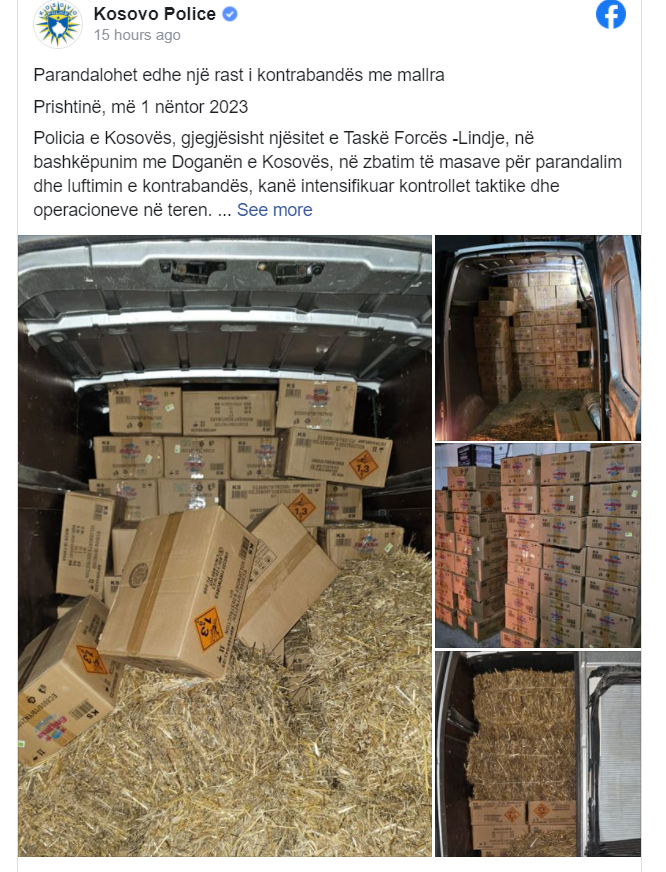 Policia e Kosovës, gjegjësisht njësitet e Taskë Forcës -Lindje, në bashkëpunim me Doganën e Kosovës, në zbatim të masave për parandalim dhe luftimin e kontrabandës, kanë intensifikuar kontrollet taktike dhe operacioneve në teren.