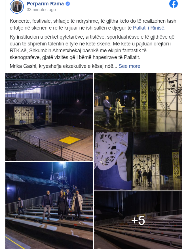 Rama në postimin e tij në Facebook ka thënë se ky institucion u përket qytetarëve, artistëve, sportdashësve e të gjithëve që duan të shprehin talentin e tyre në këtë skenë. Me këtë u pajtuan drejtori i RTK-së, Shkumbin Ahmetxhekaj bashkë me ekipin fantastik të skenografeve, gjatë vizitës që i bëmë hapësirave të Pallatit.