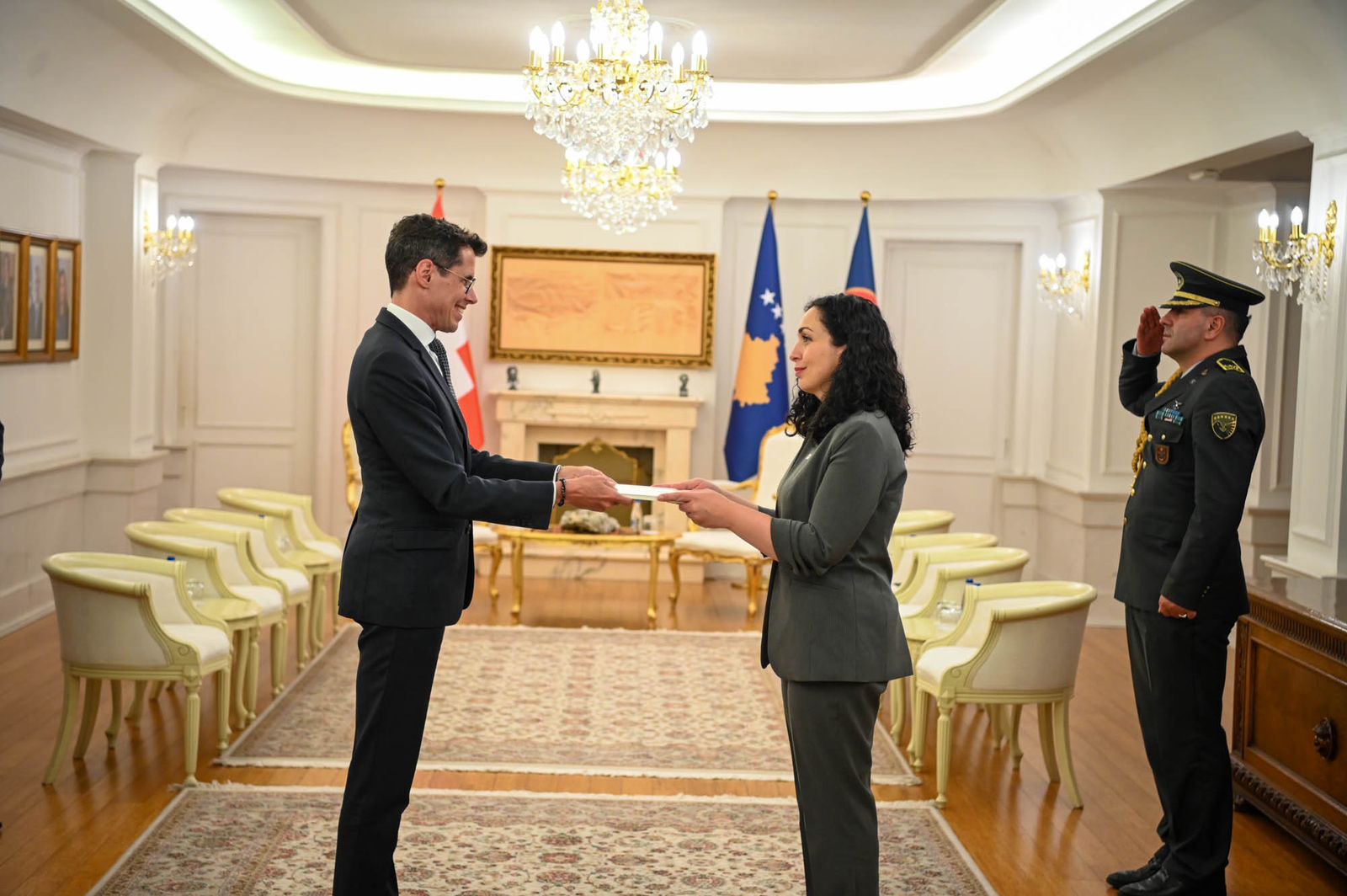 Presidentja e Republikës së Kosovës, Vjosa Osmani pranoi letrat kredenciale nga ambasadori i ri i Konfederatës Zvicerane në Kosovë, Jürg Sprecher, të cilin e uroi për detyrën dhe shfaqi shpresën se gjatë mandatit të tij do të intensifikohen edhe më tej marrëdhëniet bilaterale në mes të dy vendeve.