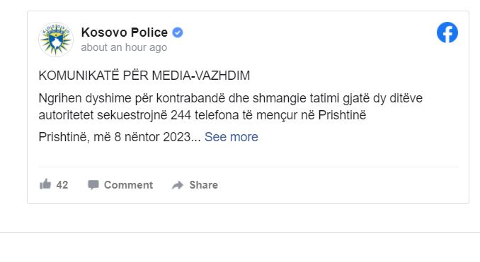 Policia e Kosovës ka njoftuar se është zbatuar Urdhër Kontrolli i lëshuar nga Gjykata Themelore në Prishtinë për kontrollimin e 31 lokaleve/bizneseve “Mobile Shop” në Prishtinë dhe si rezultat i zbatimit të kësaj Urdhëresë, janë kontrolluar gjithsejtë 30 biznese nga 31 të cekura në të dhe janë sekuestruar 118 telefona të mençur, ndërsa një biznes i njohur për hetuesit në momentin e fillimit të kontrollit e deri në përfundim nuk ka qenë i hapur, andaj i njëjti në konsultim me Prokuroren e rastit e në koordinim me Inspektorët nga MINT është bllombuar, të mos ketë qasje askush në të.