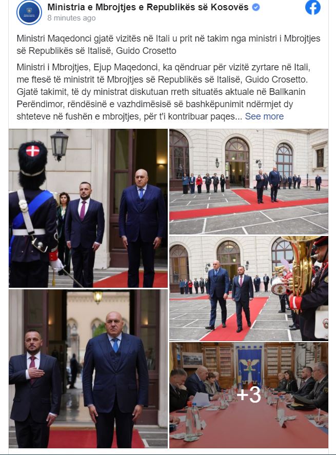 Me këtë rast, ministri Maqedonci ka falënderuar ministrin Crosetto për mbështetjen dhe kontributin që Italia ka dhënë në Kosovën, përmes trupave ushtarake dhe të sigurisë, si pjesë e KFOR-it dhe EULEX-it.