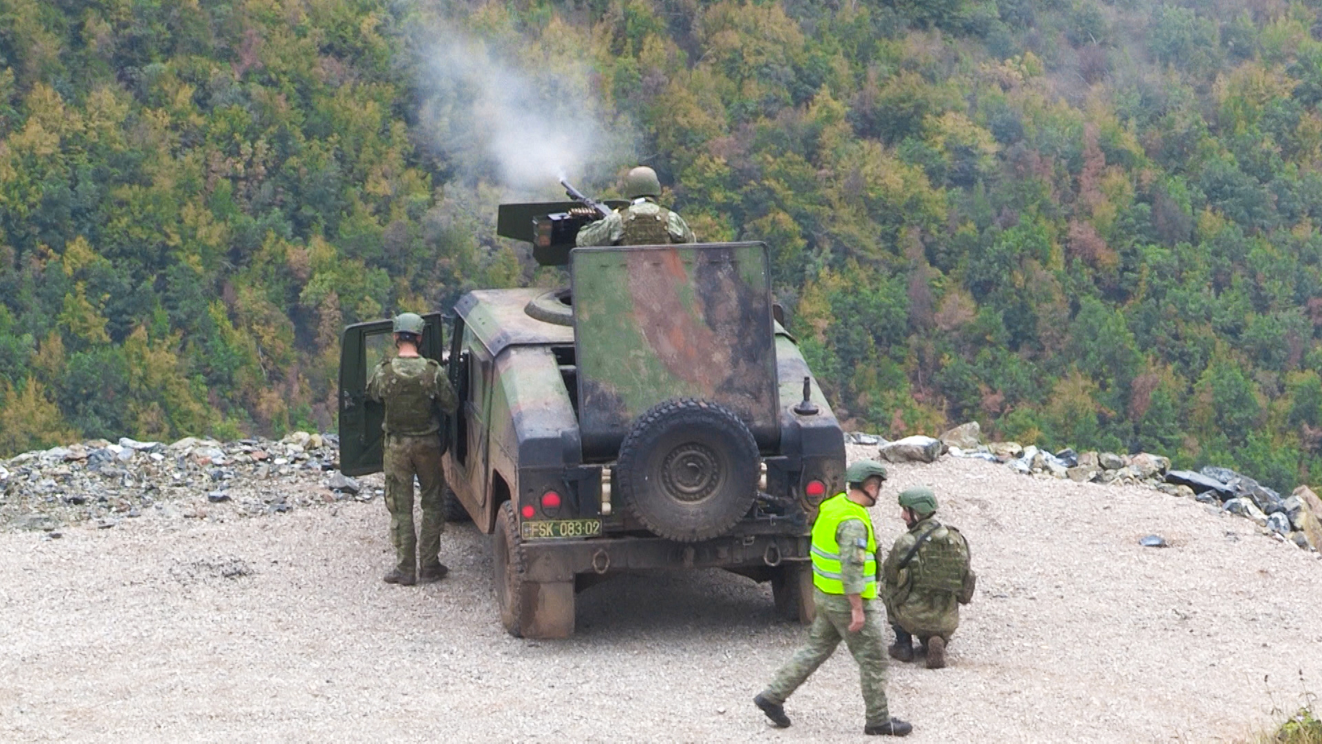 Demonstrimin e përcjellin nga afër Shefi i Shtabit të FSK-së, gjeneral brigade Jeton Dreshaj, këshilltari ushtarak i Ministrit të Mbrojtjes, kolonel Hamdi Pollomi, zv. Komandanti i Komandës së Forcave Tokësore, kolonel Hysen Dreshaj si dhe oficerë dhe nënoficerë të tjerë të FSK-së, thuhet në postimin në Facebook të Ministrisë së Mbrojtjes.