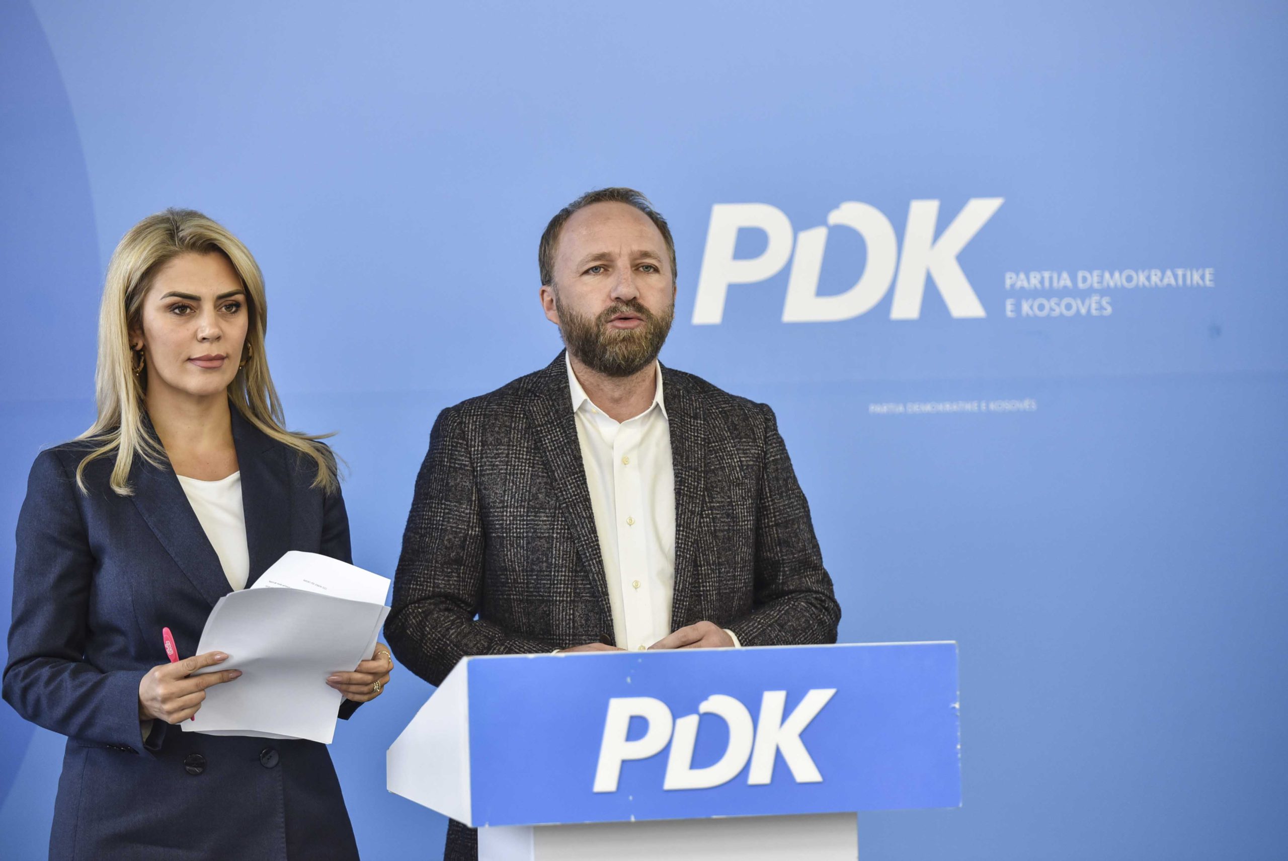 Kryetari i Grupit Parlamentar të Partisë Demokratike të Kosovës, Abelard Tahiri dhe deputetja Blerta Deliu-Kodra, në një konferencë për media të mbajtur sot, kanë folur për raportin e BE-së për Kosovën.