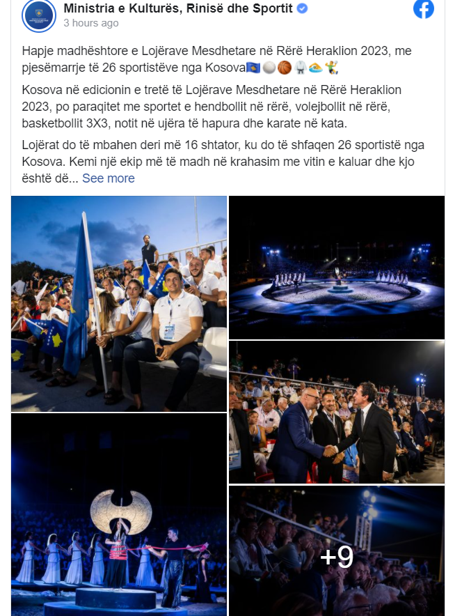 Ministria e Kulturës, Rinisë dhe Sportit ka njoftuar se janë hapur Lojërat Mesdhetare në Rërë Heraklion 2023, me pjesëmarrje të 26 sportistëve nga Kosova.